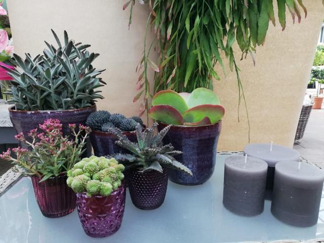 Eine riesen Auswahl an Sukkulenten gibt es bei uns in der Gärtnerei. Sie sind sehr genügsame Zeitgenossen und brauchen nur wenig Pflege! Hin und wieder etwas Wasser auf keinen Fall zu viel - dann hat man mit den Sukkulenten lange Freude. Am besten wirken sie wenn man sie in Gruppen von verschiedenen Arten zusammenstellt.