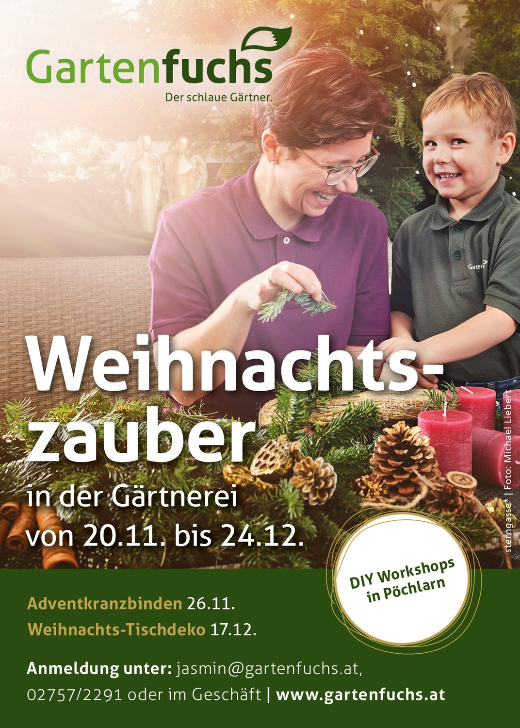 Weihnachtszauber bei Gartenfuchshttps://www.gartenfuchs.at/weihnachtszauber-bei-gartenfuchshttps://www.gartenfuchs.at/weihnachtszauber-bei-gartenfuchs/@@download/image/gartenfuchs-JS-98x137 mm-2020_11-web.jpgLassen Sie ihre Seele baumeln und schnuppern Sie Adventduft. Vom Freitag, den 20.11 bis 24.12 verwandeln wir unsere Gärtnerei in ein Weihnachtsmärchen. Am Eröffnungswochenende haben wir am 20.11 bis 20:00 für sie geöffnet.